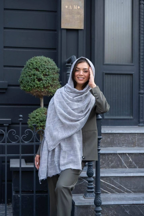 شال لنین راه نخ سفید مشکی